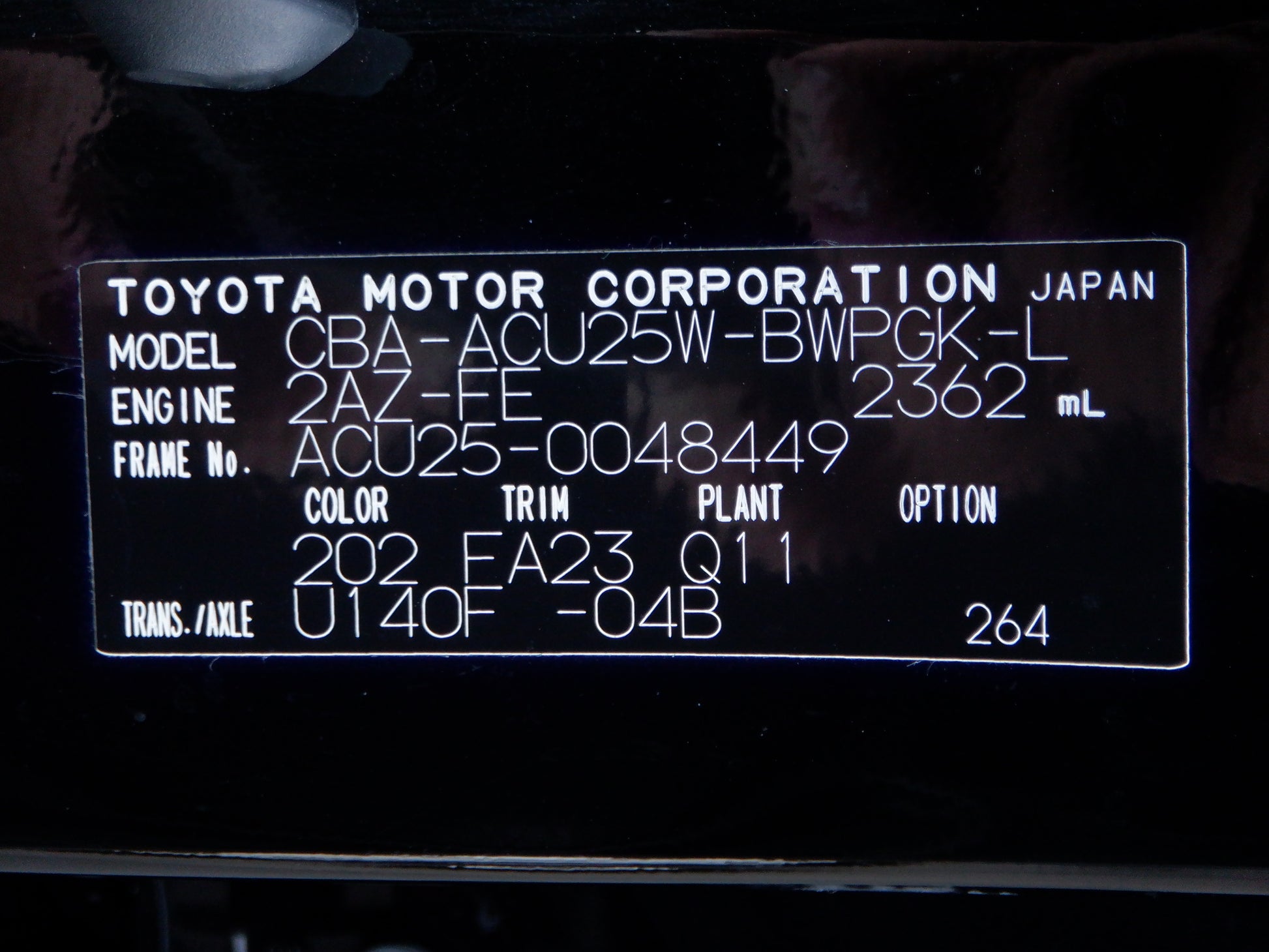 Chassis No: ACU25-0048449