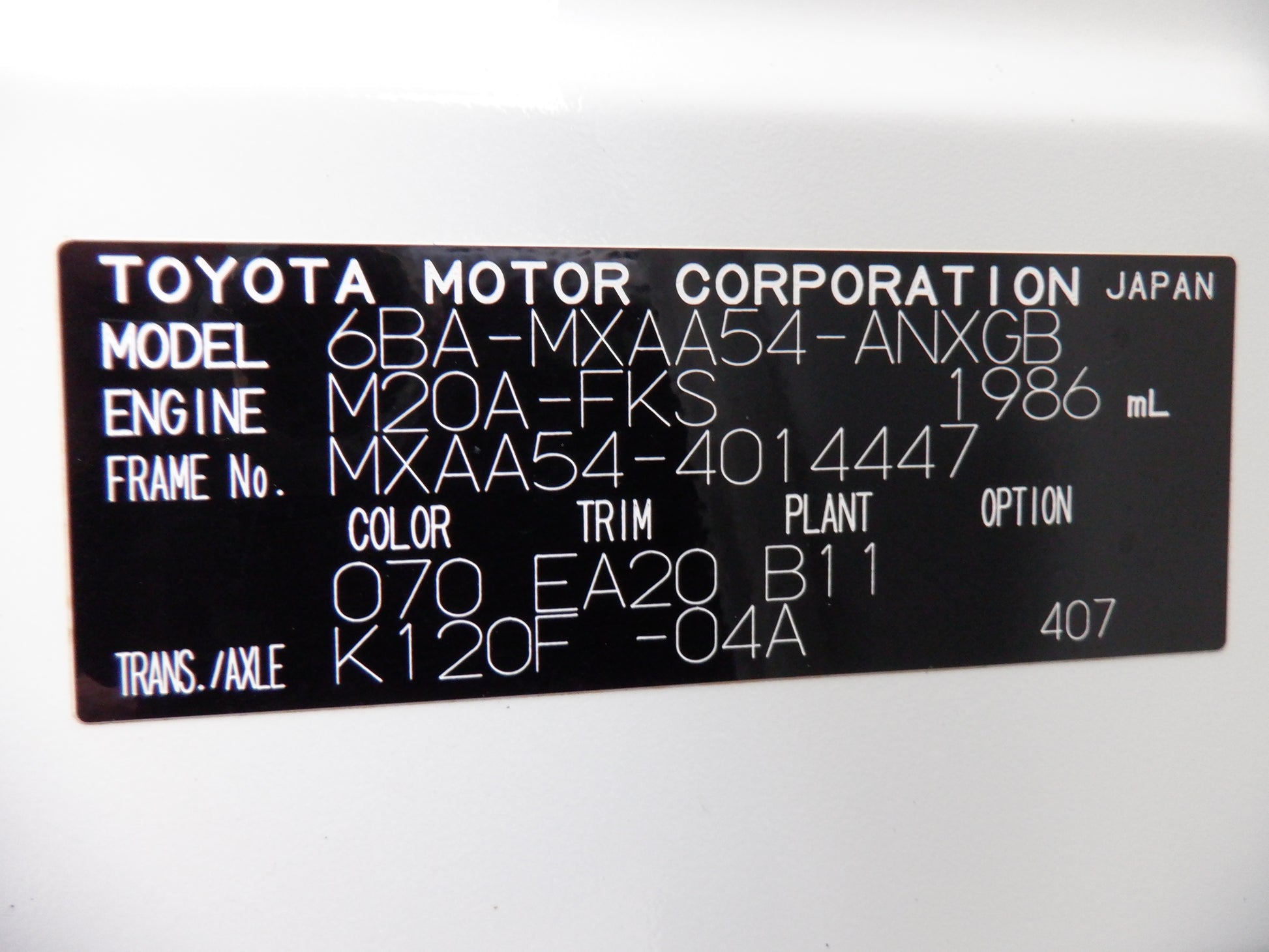 Chassis No: MXAA54-4014447
